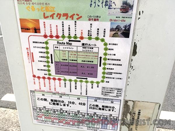 松江市内は結構広く、JR駅と一畑電車の駅も徒歩20分くらい離れているし、観光スポットも徒歩で回るのは辛いほど点在しているので、このバスがとにかく便利。